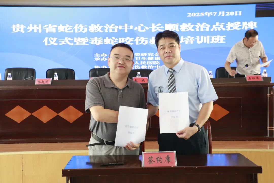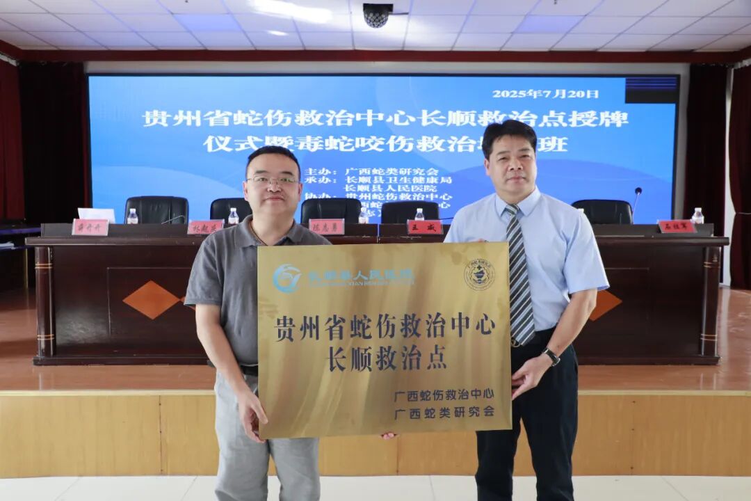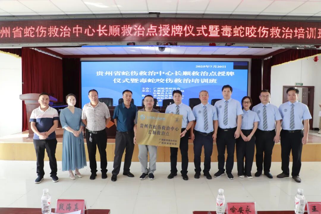 7月20日,贵州省蛇伤救治中心长顺救治点授牌仪式暨毒蛇咬伤救治培训班在长顺县医疗集团中心医院县中医医院举行。广西蛇类研究会专家团队、长顺县卫生健康局及县医疗集团中心医院相关负责人、医护人员等参加。仪式现场,长顺县医疗集团中心医院相关负责人表示,蛇伤救治中心的成立,标志着长顺县及周边区域在蛇伤救治领域迈出了重要一步,是长顺县医疗卫生事业发展的重要成果,将有效解决县域群众蛇伤就医难题,切实提升蛇伤救治能力,为群众生命安全提供有力保障。随后,广西蛇类研究会、长顺县人民医院签署合作协议,广西蛇类研究会专家团队向长顺县人民医院授予“贵州省蛇伤救治中心长顺救治点”牌匾。授牌仪式后,毒蛇咬伤救治培训班随即开展。专家们围绕“中国十大毒蛇咬伤中毒的诊治”“非新生儿破伤风解读”“不明蛇咬伤鉴别诊断” 等主题进行授课,就蝰蛇科特点、蛇伤救治中心建设经验等内容展开分享,为现场医护人员带来专业指导。据了解,下一步,长顺县人民医院将不断提升综合服务能力,把贵州省蛇伤救治中心长顺救治点建设好、利用好,加强蛇伤临床救治知识的培训,建立协同救治的快速反应机制,提高蛇伤救治能力,为保障群众生命安全、身体健康作出新的更大贡献!