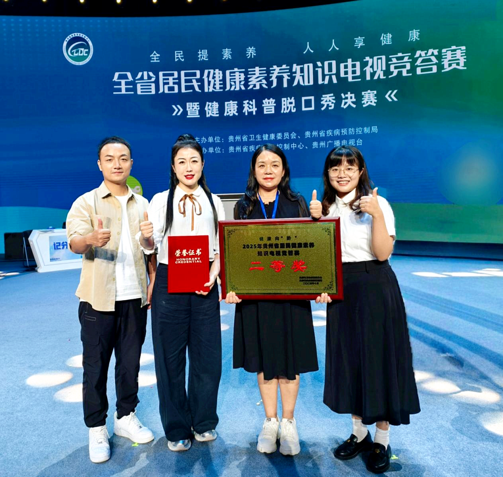 经过激烈的角逐,黔南州代表队凭借扎实的理论基础与出色的健康传播能力,最终斩获“2025年贵州省居民健康素养知识电视竞答赛二等奖”及“健康传播优秀奖”。下一步,黔南州将以此次竞赛为契机,进一步创新科普形式、丰富科普内容,持续产出更优质健康科普作品,切实提升全民健康素养,为建设健康黔南注入更强动能!