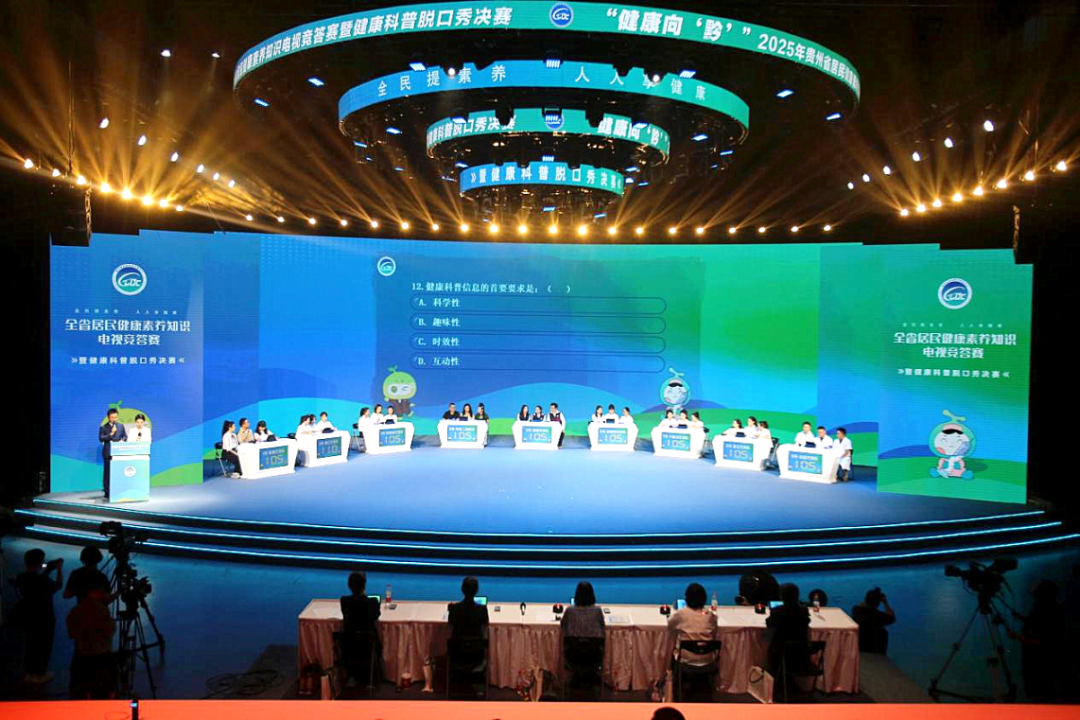 2025年10月17日,由贵州省卫生健康委员会、贵州省疾病预防控制局主办,贵州省疾病预防控制中心、贵州广播电视台共同承办的“2025年贵州省居民健康素养知识电视竞答赛暨健康科普脱口秀决赛在贵州广播电视台举行。黔南州代表队经过前期精心筹备、充分打磨,从来自全省多家医疗卫生机构及地区的26支代表队中脱颖而出,成功晋级决赛,获得能与其他8支精英队伍同台竞技的机会。