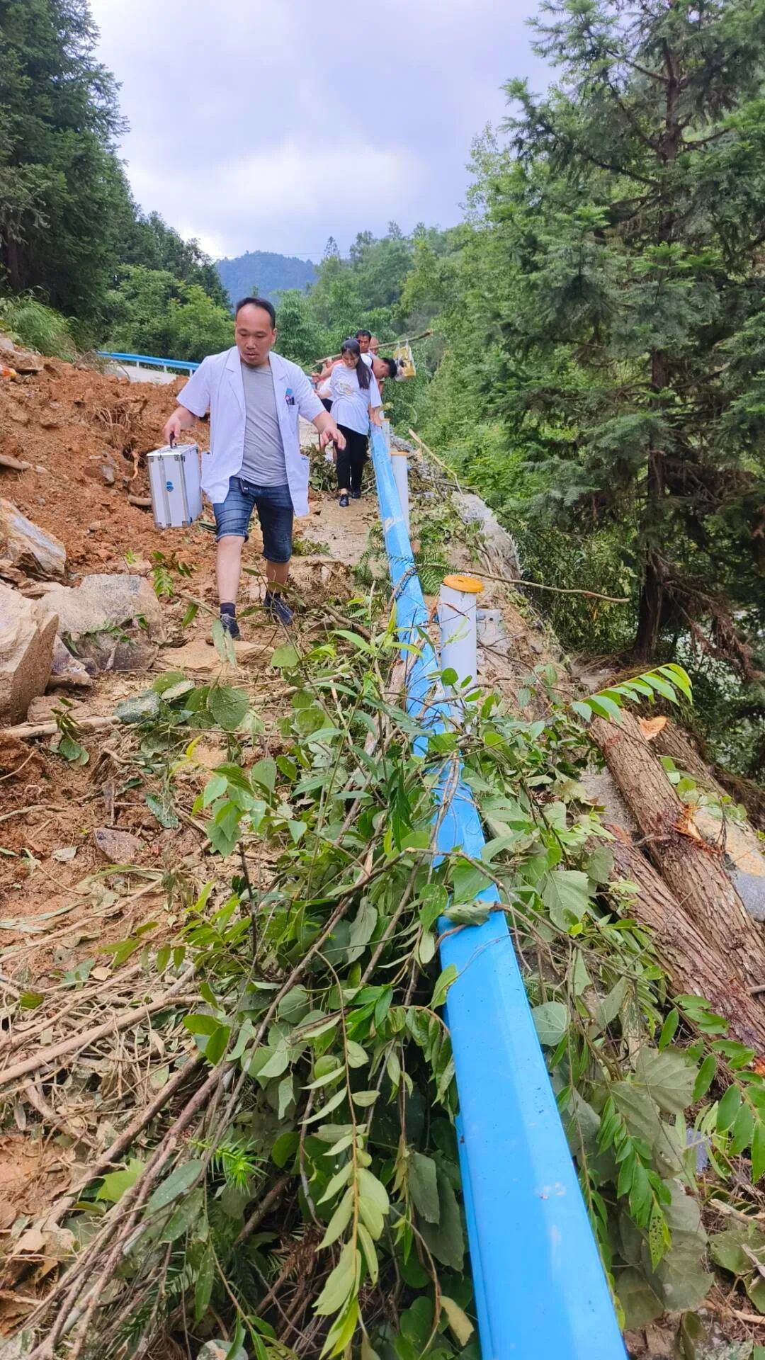 “我们家很高,路都断完了,车子不通。当时医生很及时到我家里接我公、我奶,如果他们不及时到的话后果不知会怎么样。”患者家属潘祥勇说。