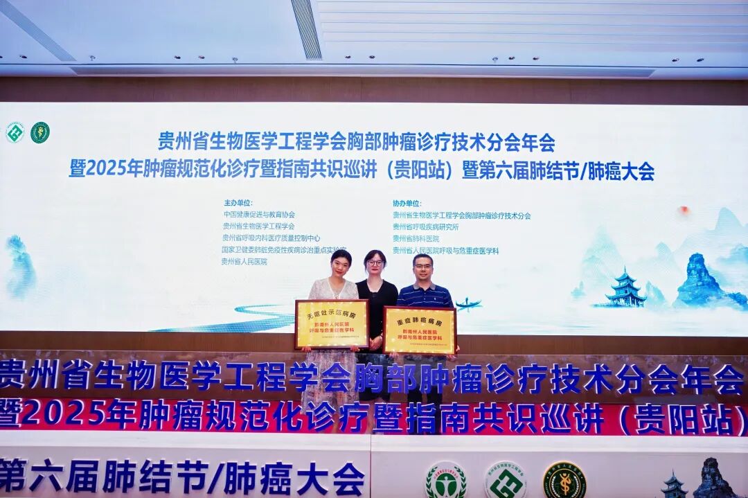 重症肺癌因病情复杂危重、治疗难度高,对医疗团队的精准诊断、多学科协作(MDT)、呼吸支持技术、并发症管理及个体化治疗能力提出了全方位挑战。“重症肺癌病房”的授牌既是对黔南州人民医院呼吸与危重症医学科在重症肺癌救治领域综合实力的高度认可,也印证了科室在危重肺癌患者救治中的坚实保障——科室配备了经验丰富的医护团队、先进生命支持设备,并建立了完善的危重肺癌患者标准化救治流程,致力于为患者提供更专业、精准、人性化的医疗服务,助力患者延长生存期、提升生活质量。
