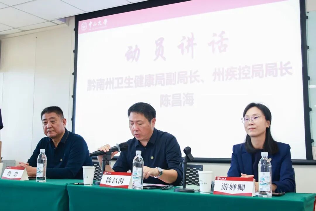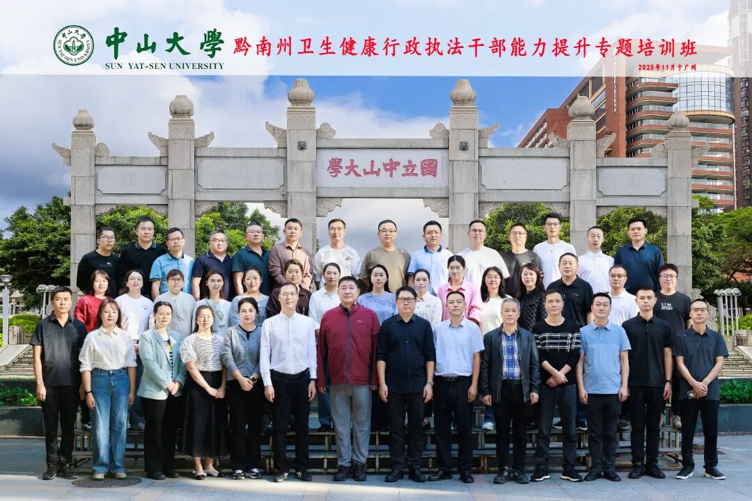 为深入贯彻落实依法治国基本方略,适应新时代卫生健康事业改革发展的新要求,全面提升全州卫生健康系统党政领导干部的依法行政水平和行政执法能力,2025年11月17日,黔南州卫生健康局(黔南州疾病预防控制局)在中山大学隆重举行“黔南州卫生健康行政执法干部能力提升专题培训班”开班仪式。广州市疾病预防控制中心一级调研员詹忠、中山大学全国干部教育培训基地公共管理培训中心副部长游婵卿、州疾控局局长陈昌海出席开班仪式。陈昌海同志作动员讲话。
